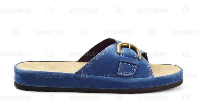 Синий шлепанец на белом фоне