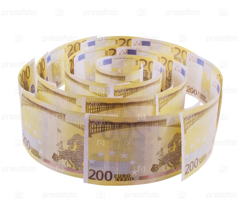 Спираль из евро на белом фоне