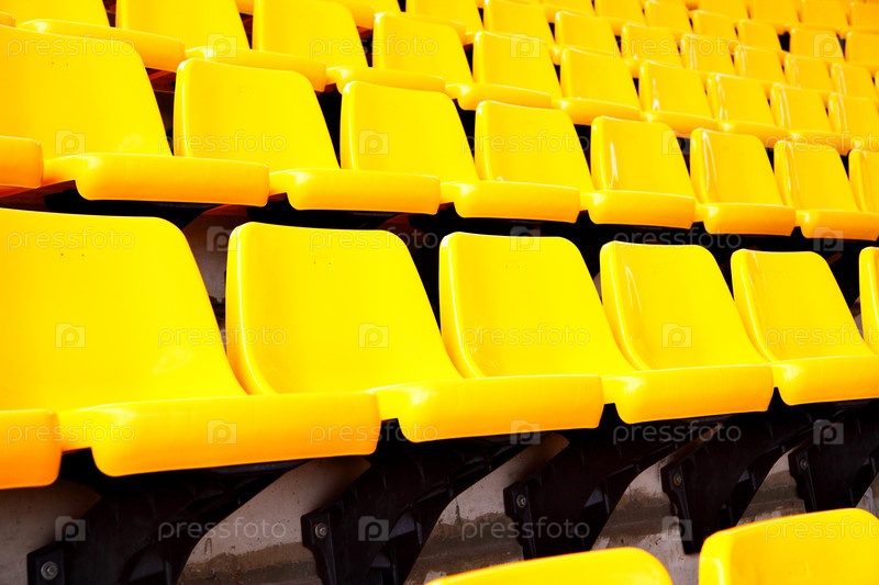 Желтые пластиковые сидения на стадионе