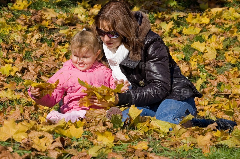 Молодая мама с дочерью в осеннем парке