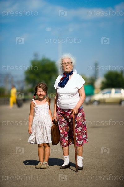 Бабушка с внучкой на открытом воздухе