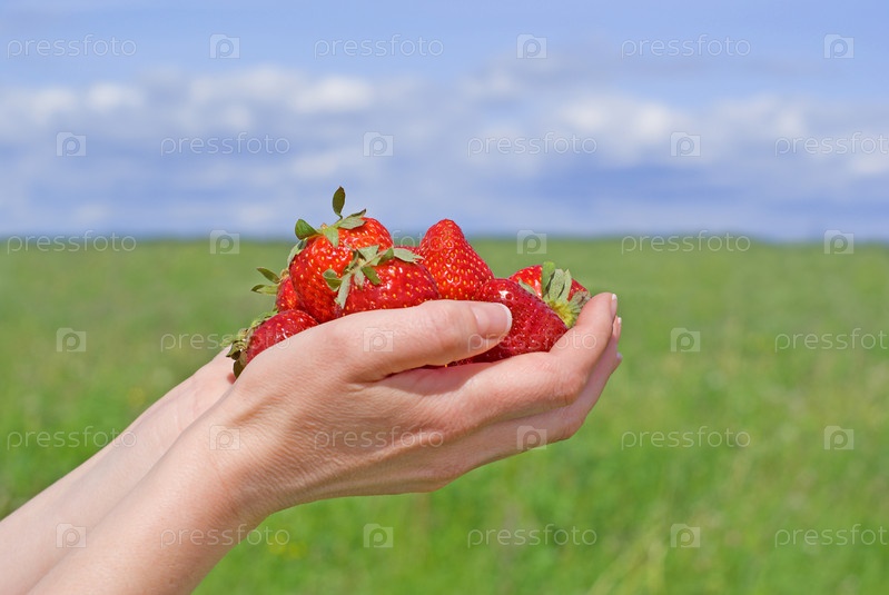 Горсть клубники в руках