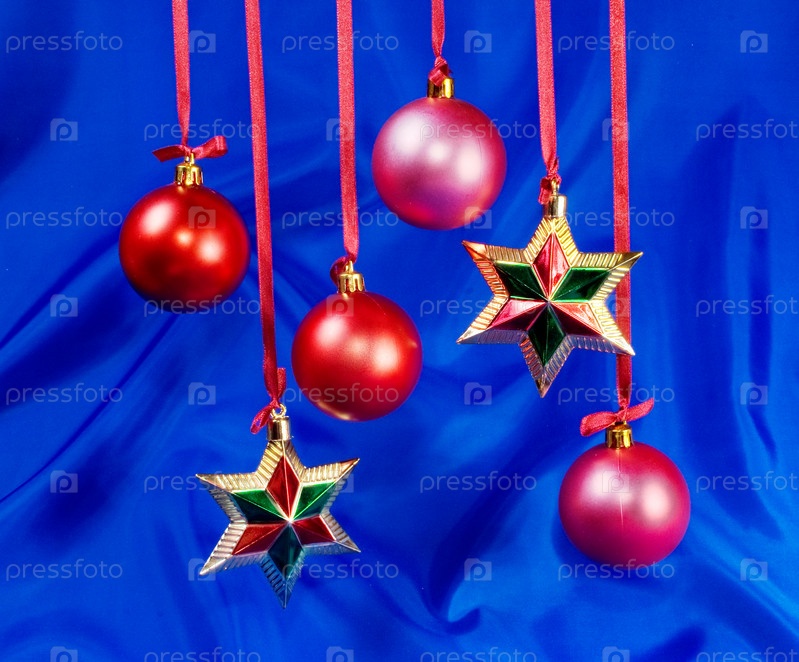 Рождественские игрушки на синем фоне