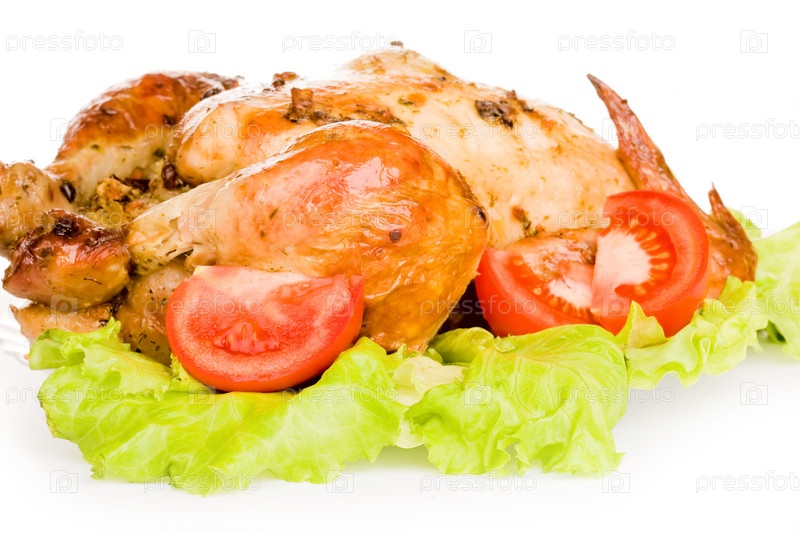 Жареная курица и овощи