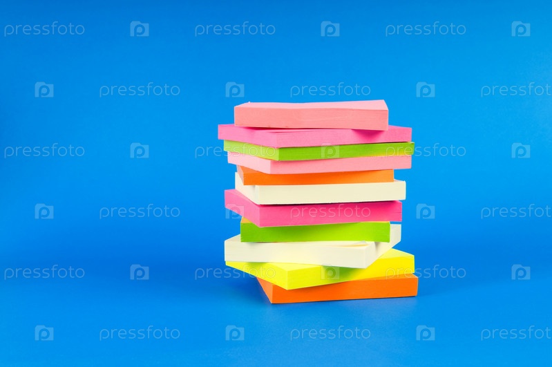 Стопка цветных стикеров на синем фоне