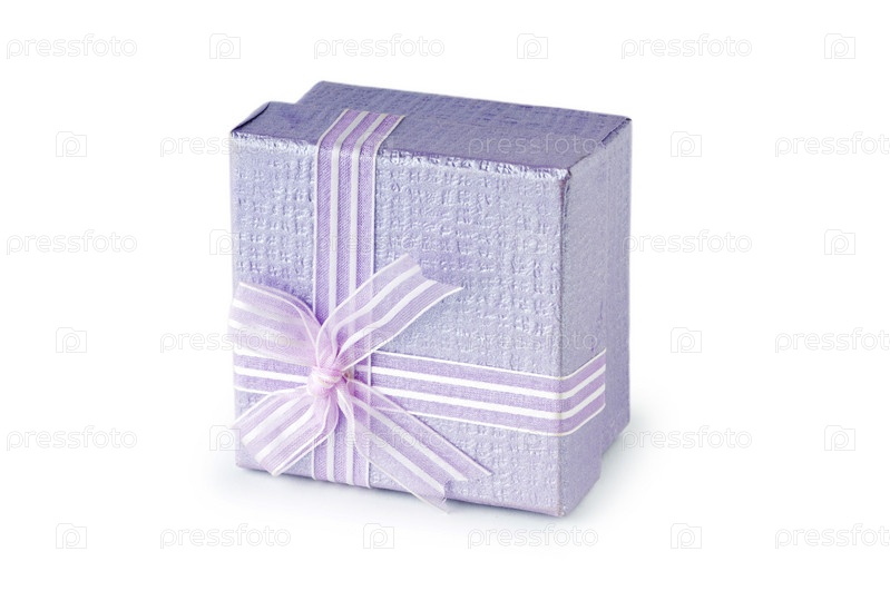 Сиреневая подарочная коробка на белом фоне