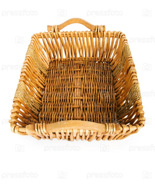 Плетеная корзина на белом фоне