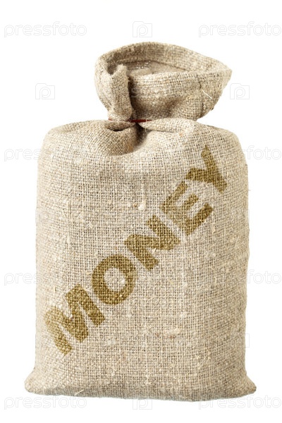 Мешок с деньгами крупным планом, изолированный на белом фоне