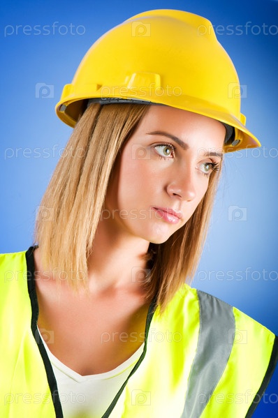 Девушка в желтой каске на белом фоне
