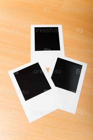 Три пустые фоторамки на деревянном полированном столе