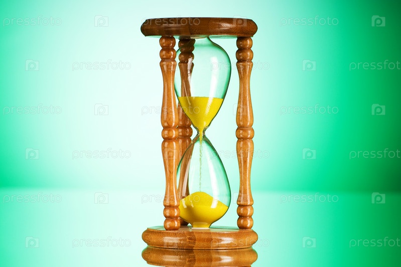 Песочные часы на зеленом фоне