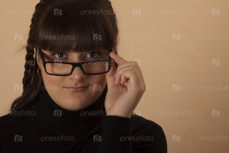 Портрет молодой брюнетки в очках