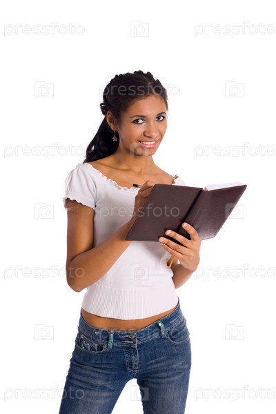 Красивая темнокожая молодая женщина с блокнотом