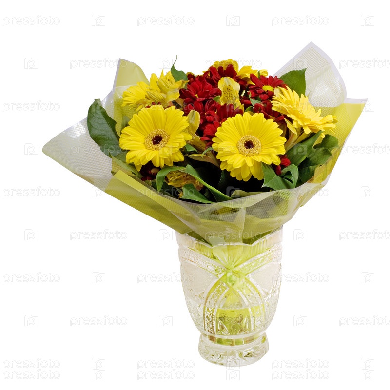 Букет цветов в вазе на белом фоне
