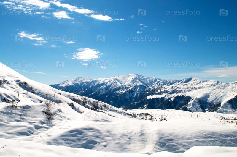 Белые заснеженные горы под синим небом
