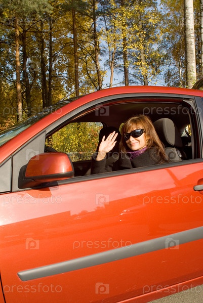 Девушка в красном автомобиле