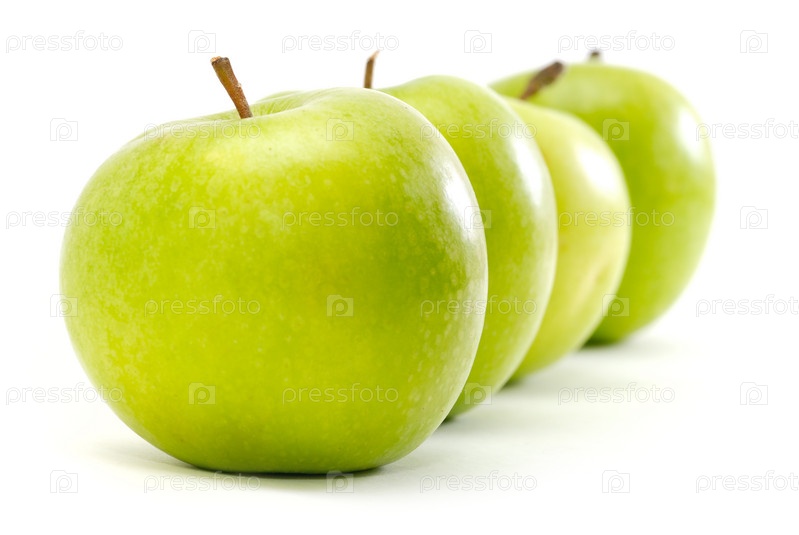 Зеленые яблоки, лежащие в ряд