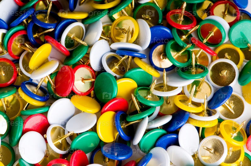 Цветные канцелярские кнопки крупным планом