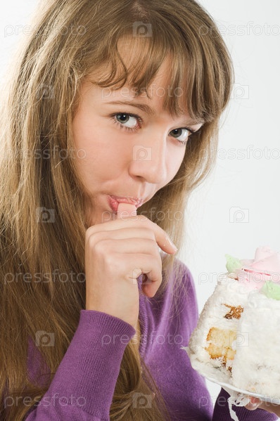 Привлекательная девушка с тортом на светлом фоне