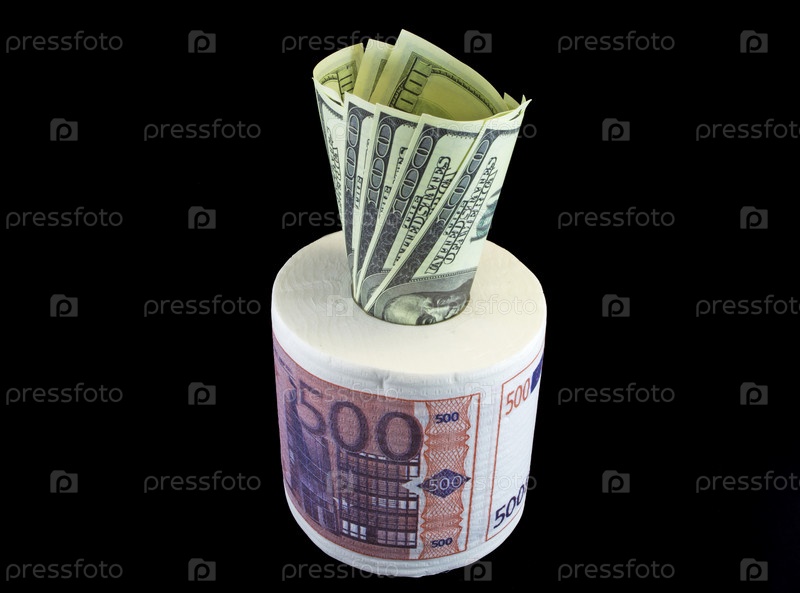 Туалетная бумага с изображением евро и доллары на черном фоне