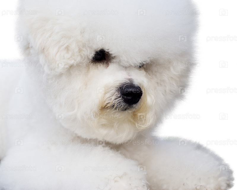 Белая пушистая собака на белом фоне