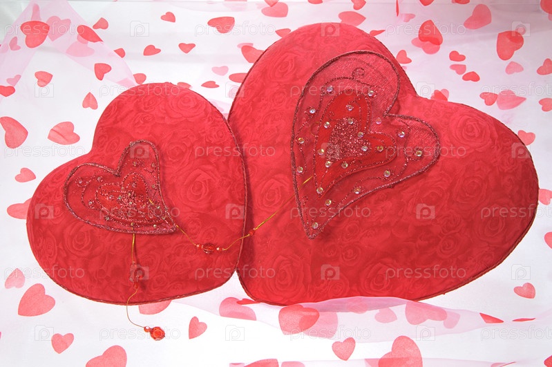 Символ двух сердец на текстиле Валентина