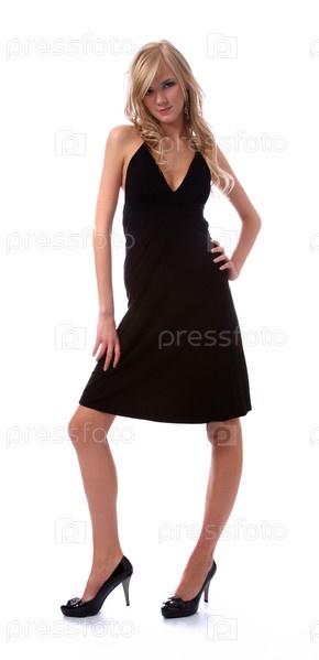 Портрет красивой блондинки в черном платье