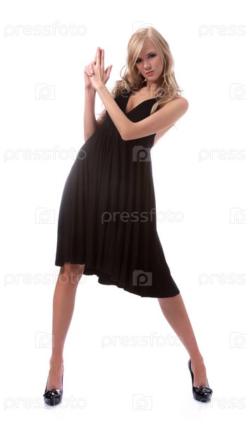 Портрет красивой блондинки в черном платье