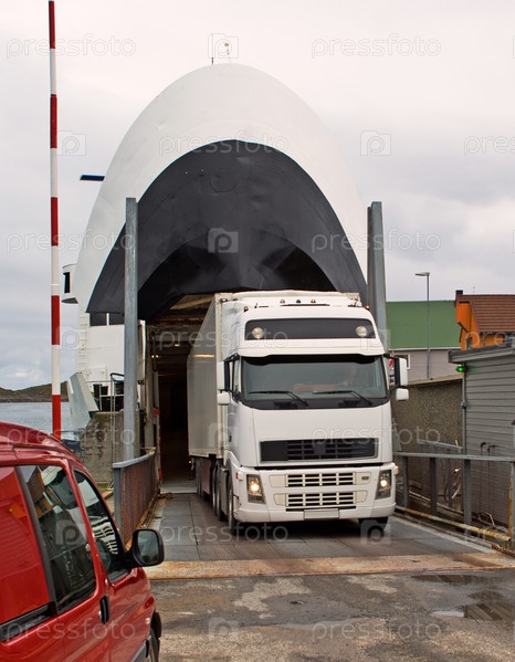 Грузовик выезжает с парома