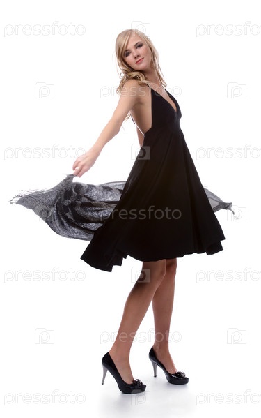 Портрет красивой блондинки в черном платье с платком