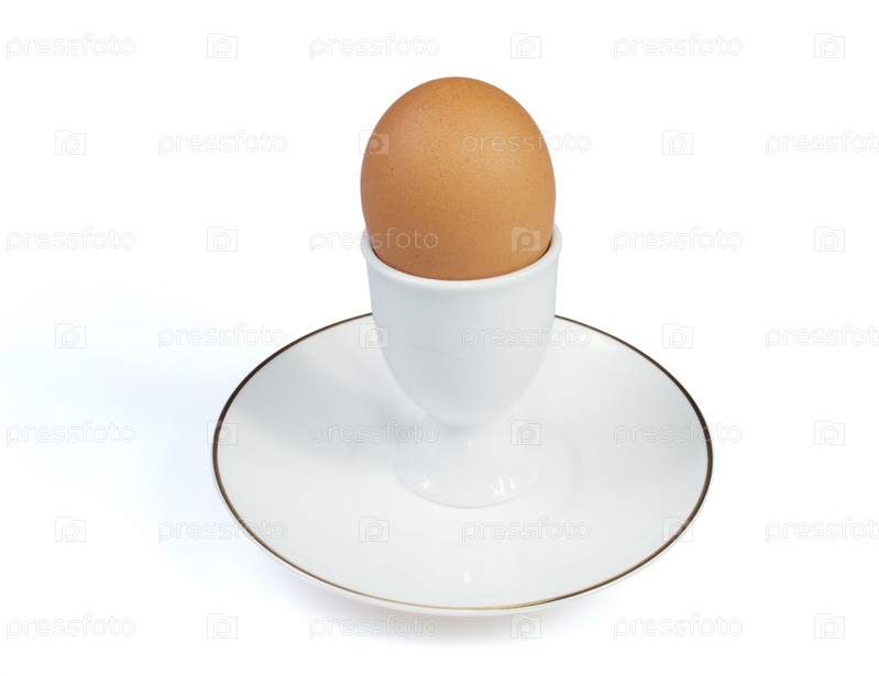 Яйцо в подставке на белом фоне
