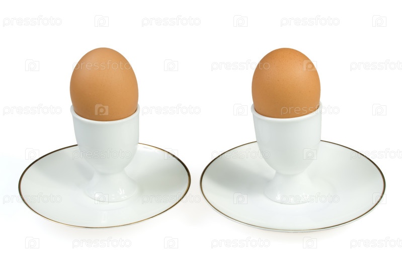 Яйца в подставке на белом фоне