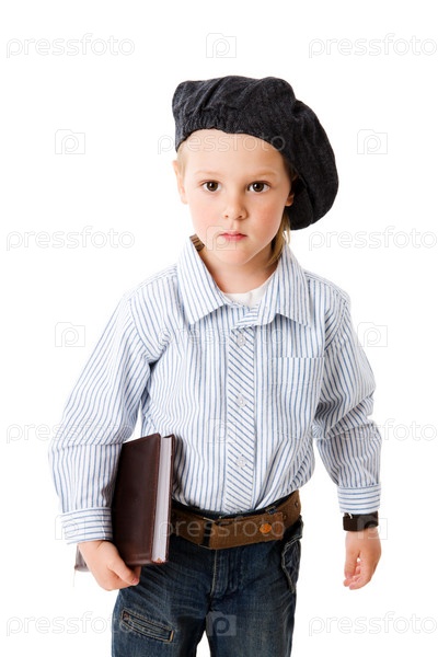 Портрет маленького бизнесмена на белом фоне