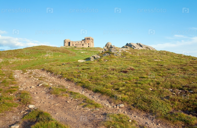 Горный склон с крепостью летним днем (Украина, Карпаты)
