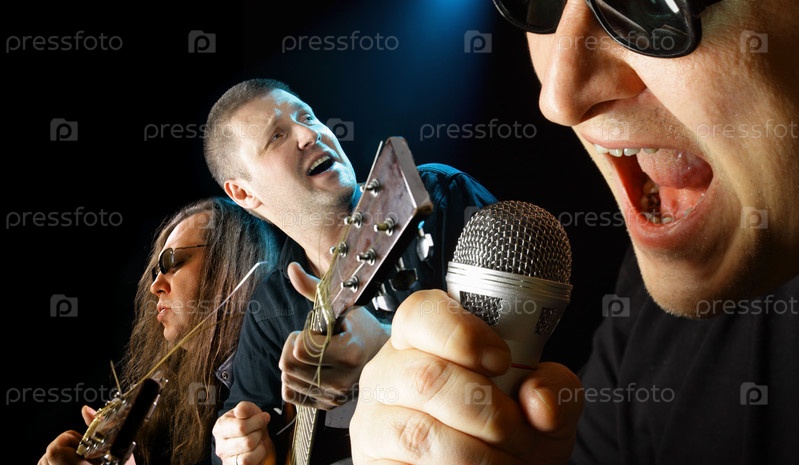 Трое музыкантов, поющих на сцене