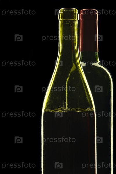 Две бутылки красного вина крупным планом на черном фоне