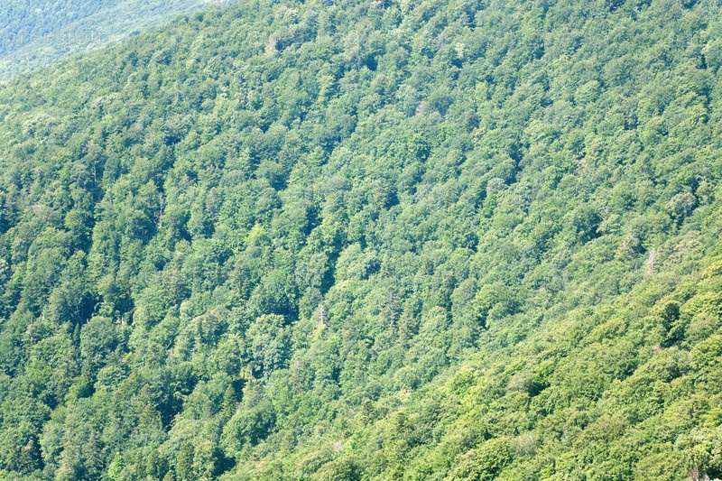 Горный пейзаж с зеленым лесом. Украина, Карпаты