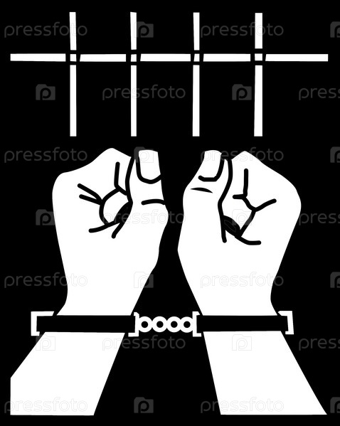 Векторный силуэт человеческих рук в наручниках на черном фоне