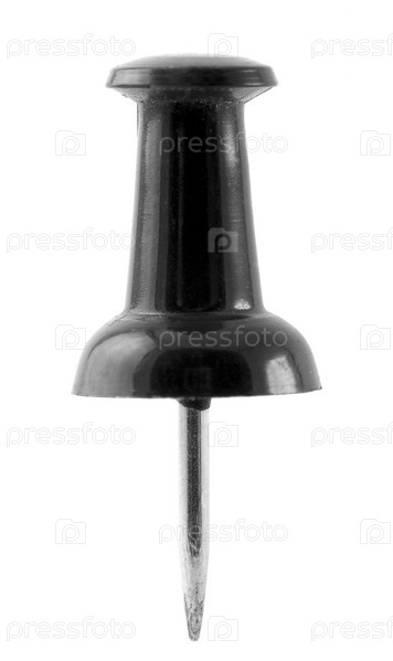 Канцелярская кнопка крупным планом на белом фоне