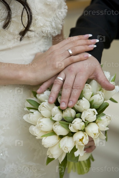 Молодожены держатся за руки