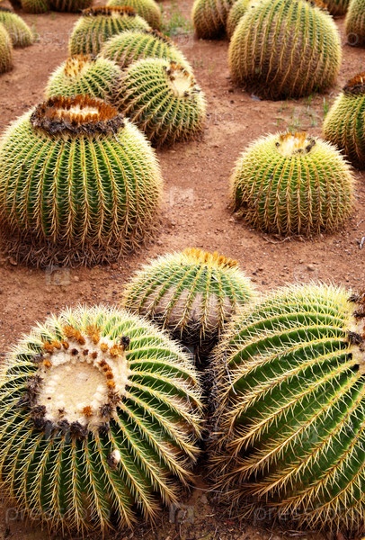 Кактусы 'Золотая бочка' крупным планом (Echinocactus grusonii)