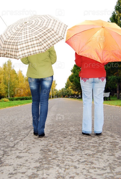 Две женщины в парке под зонтами