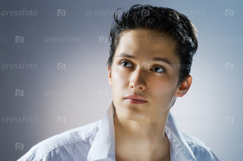 Портрет молодого мужчины на голубом фоне