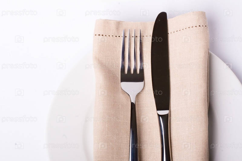 Столовые приборы с салфеткой на тарелке