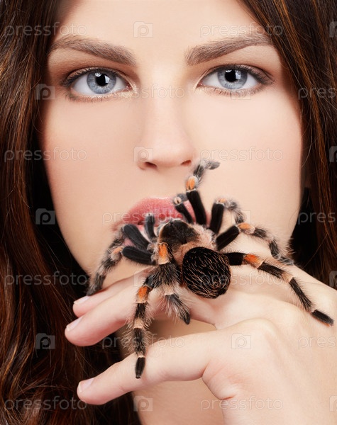 Девушка с пауком в руках