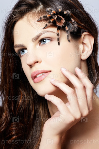 Девушка с пауком, ползущим по лицу