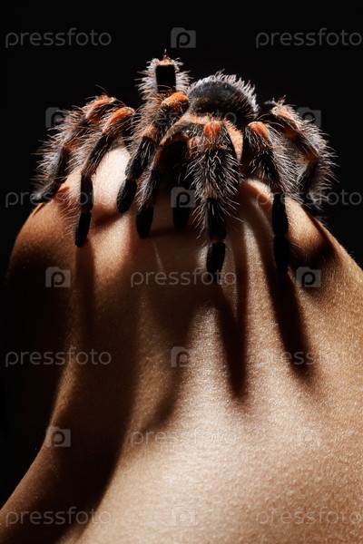 Крупным планом паук на плече девушки