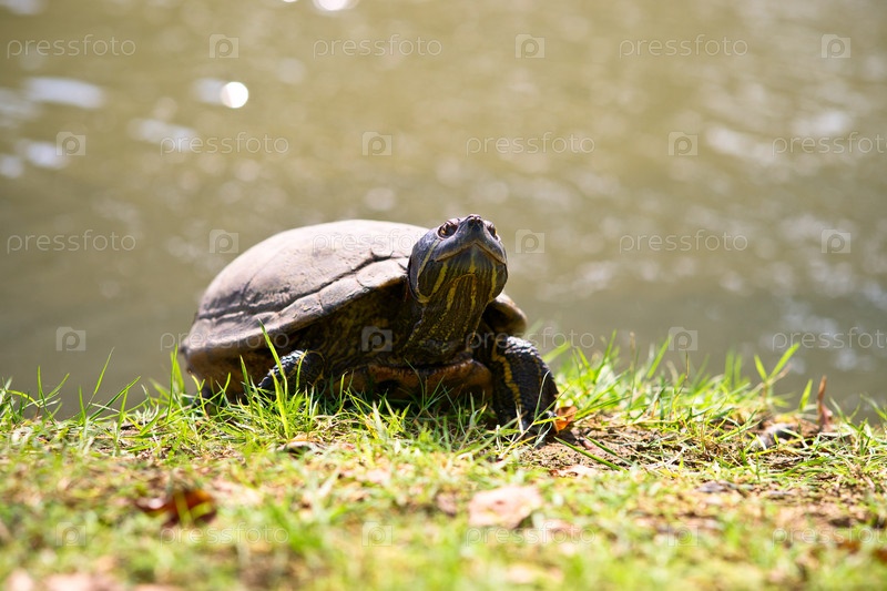 Черепаха на зеленой траве