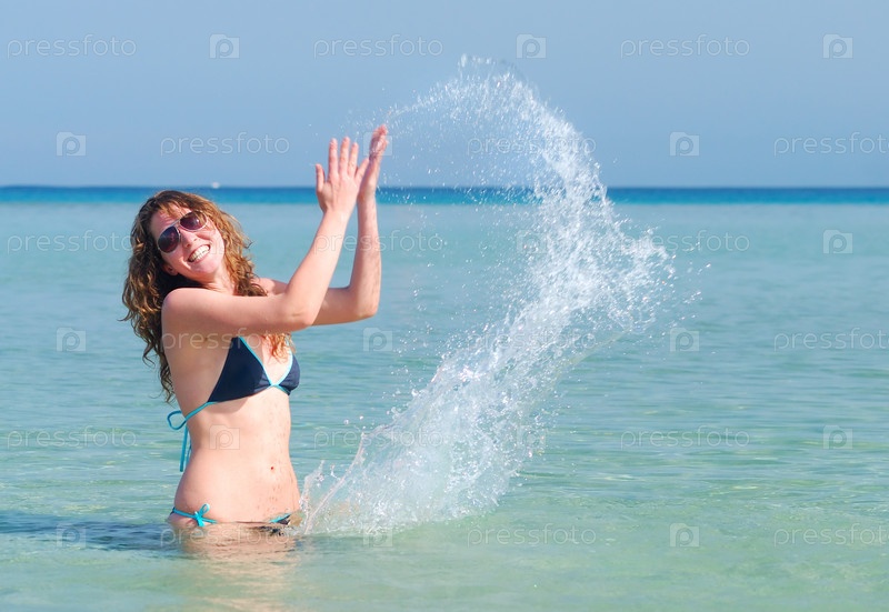 Девушка плещется в море