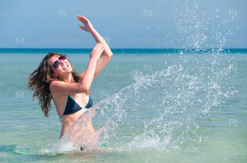 Девушка плещется в море